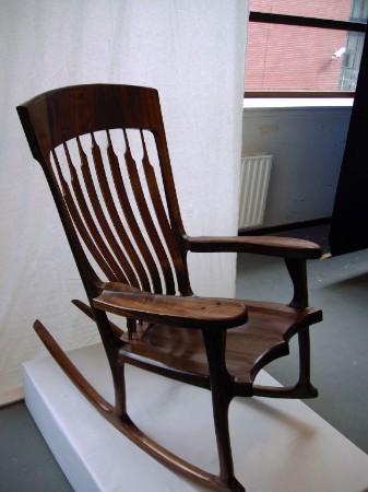 Mijn afstudeerproject was dan ook een echte uitdaging. Een exclusieve schommelstoel van Amerikaans walnoten.
