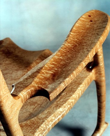 "Geïnspireerd door de schommelstoel van de Amerikaanse meubelmaker Sam Maloof (1916-2009) heeft Hans Defauwes onze schommelstoel geheel handmatig vervaardigd.