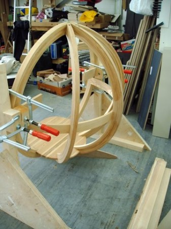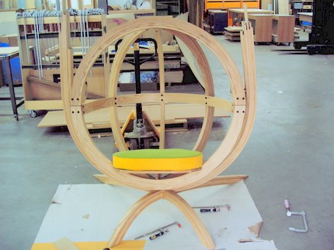 Er is nu echter een voet en ophanging nodig waar de stoel in komt.